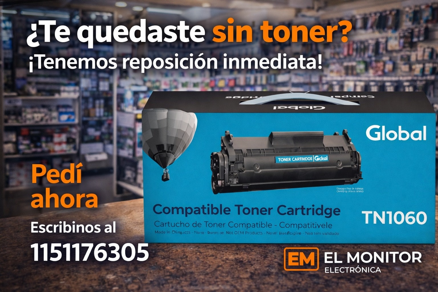 TONNER GLOBAL MODELO TN1060 COMPATIBLE CON VARIAS IMPRESORAS NEGRO Y BLANCO